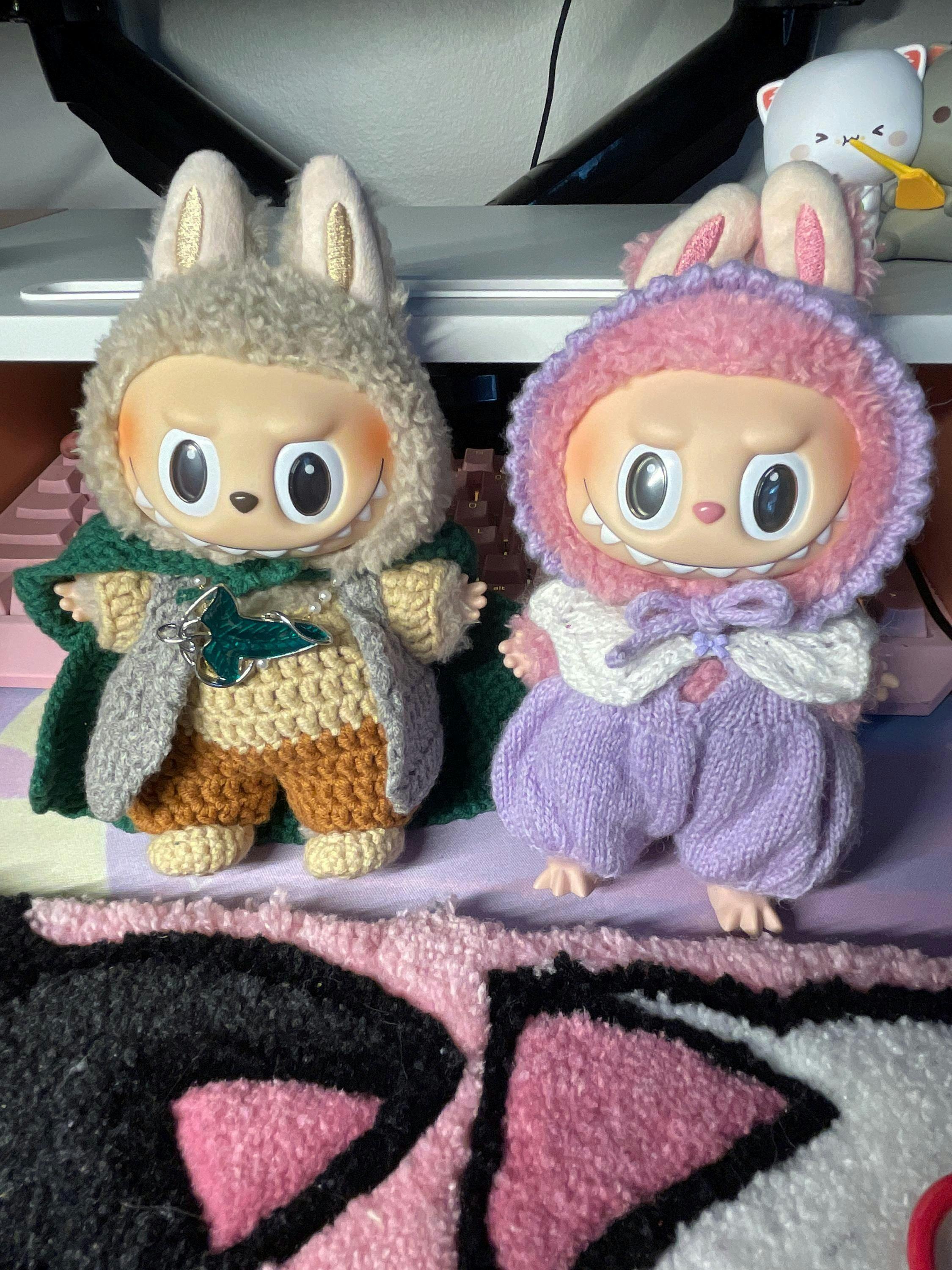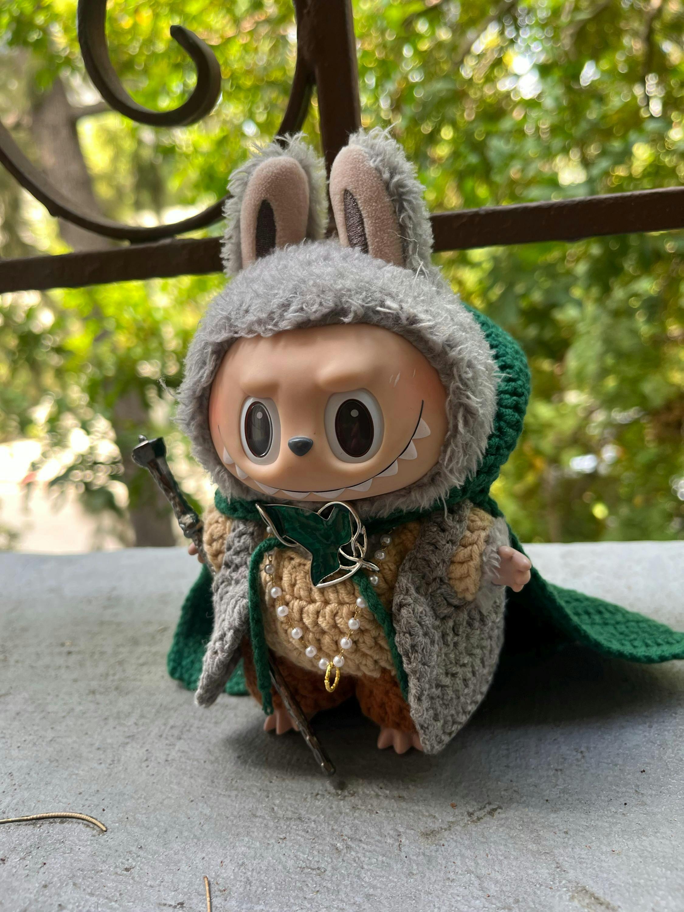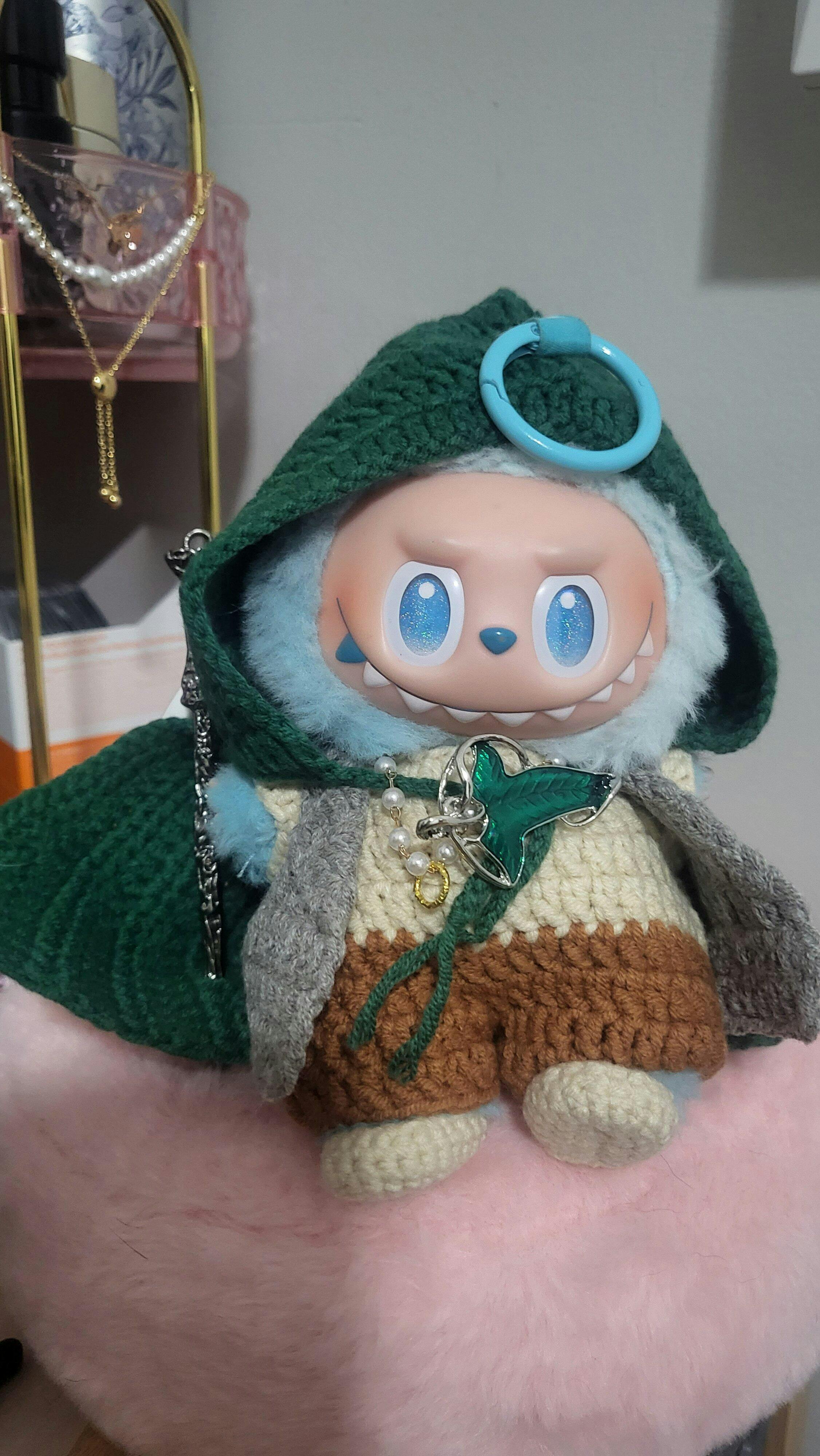 Handmade Labubu Clothes, 7pc Fantasy Adventurer Labubu Doll Clothes, Crochet Hooded Cloak & Vest Set for 15/17cm Labubu Outfits