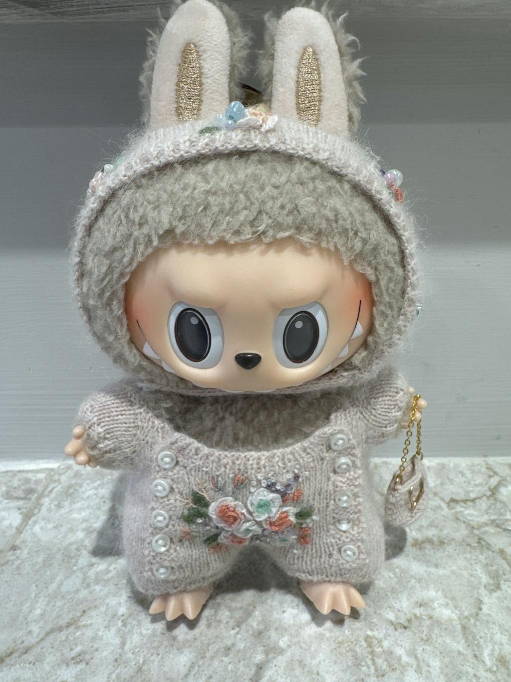 Handmade Labubu Clothes, Embroidered Floral Doll Romper, Hand-Knitting Bouquet Outfit, Romantic Cottagecore Set for 15/17cm Labubu outfits